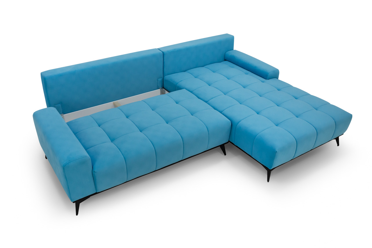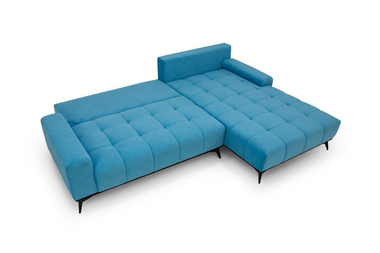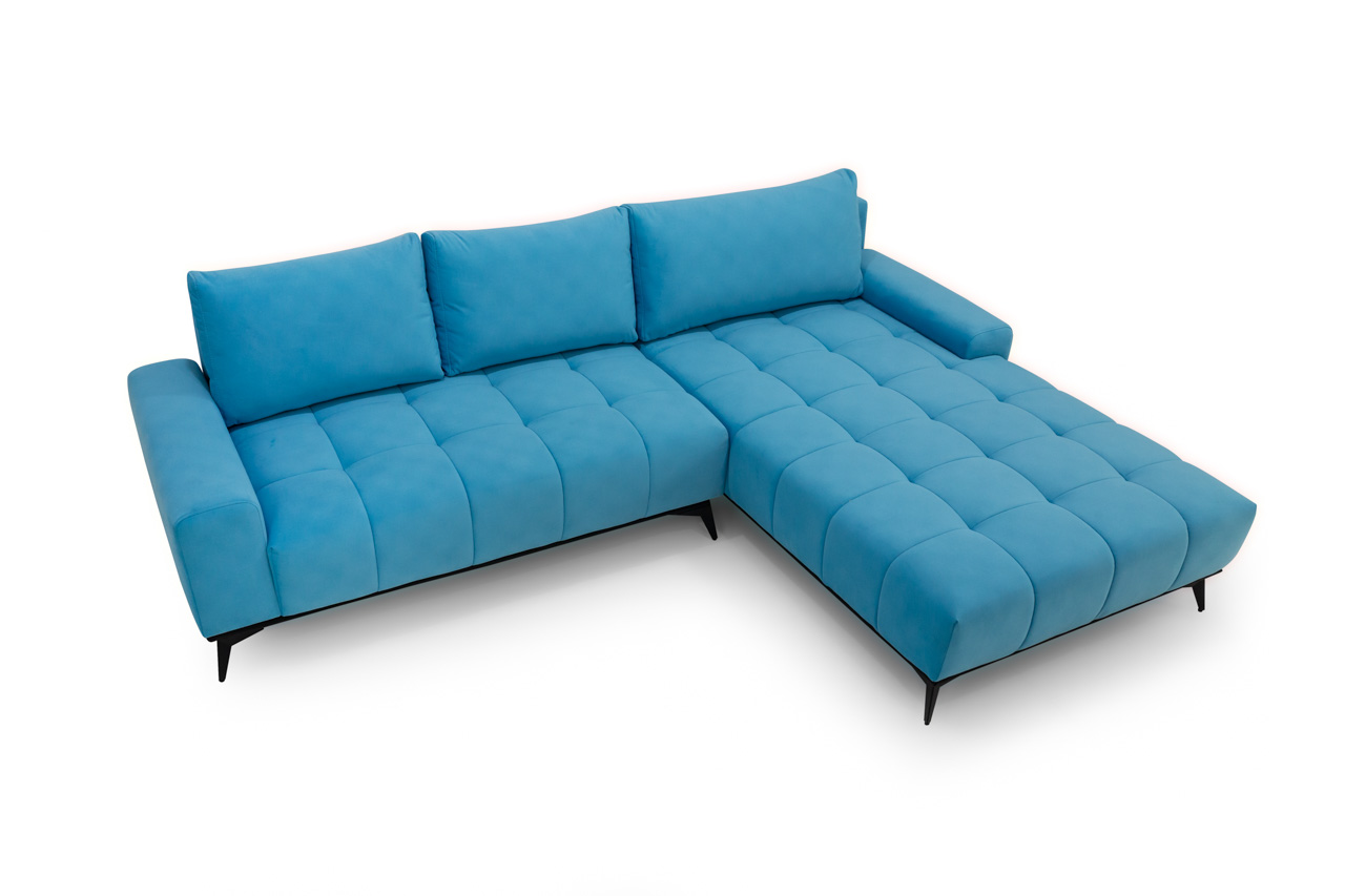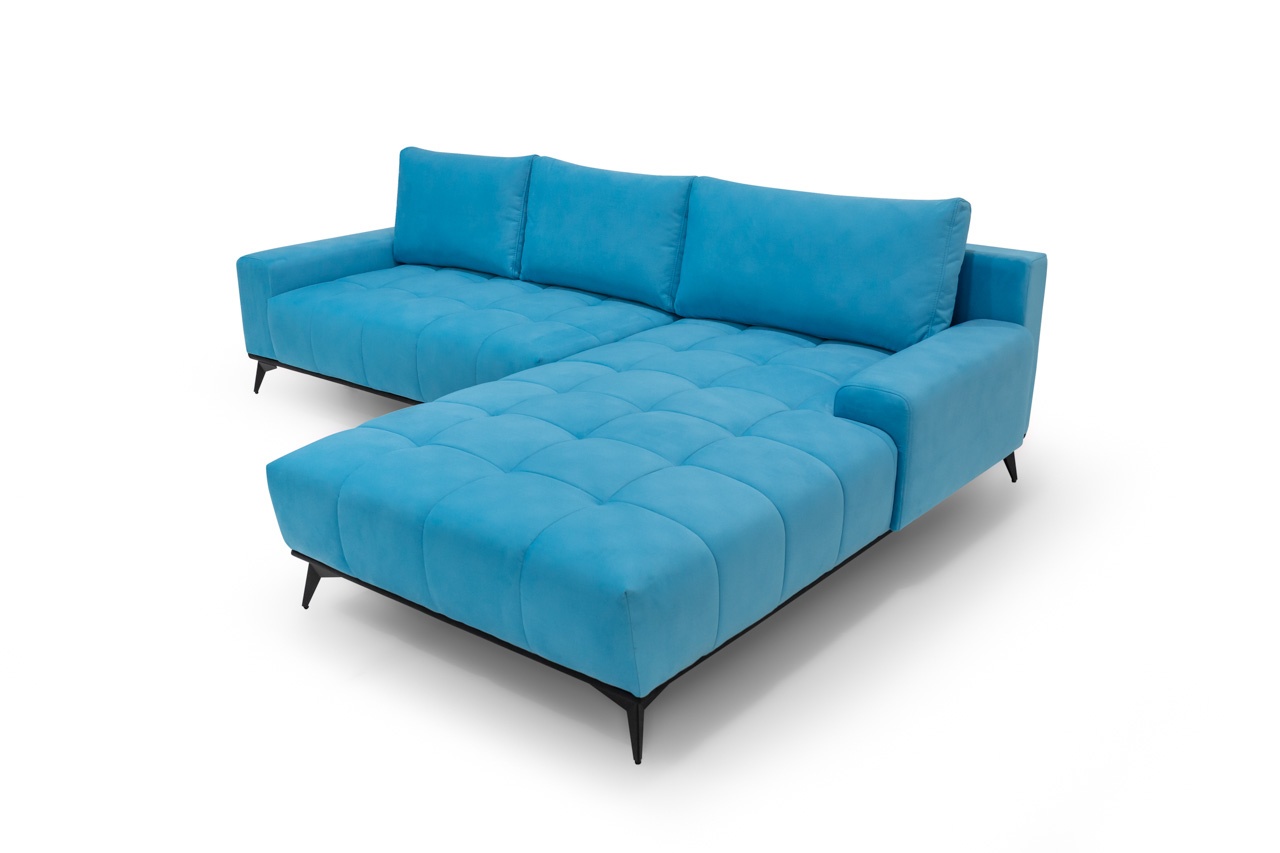 Narożnik modułowy z serii Toledo. Jest to narożnik, który jest odpowiedzią na oczekiwania i potrzeby naszych klientów. Nowoczesny a zarazem elegancki, funkcjonalny a przy tym bardzo delikatny i subtelny. Narożnik posiada funkcję spania na automacie DL, jest ona stabilna i wygodna, ponadto narożnik posiada pojemnik do przechowywania; te funkcje sprawiają, że narożnik jest nie tylko estetycznym dodatkiem do wnętrza ale przede wszystkim praktycznym rozwiązaniem. Wysokie nogi narożnika nadają mu lekkości, a pikowane siedziska wprowadzają element świeżości i oryginalności.